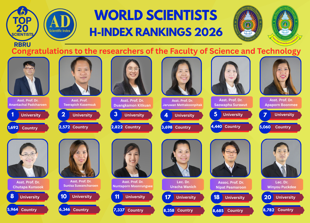 ขอแสดงความยินดีกับนักวิจัยคณะวิทยาศาสตร์และเทคโนโลยี