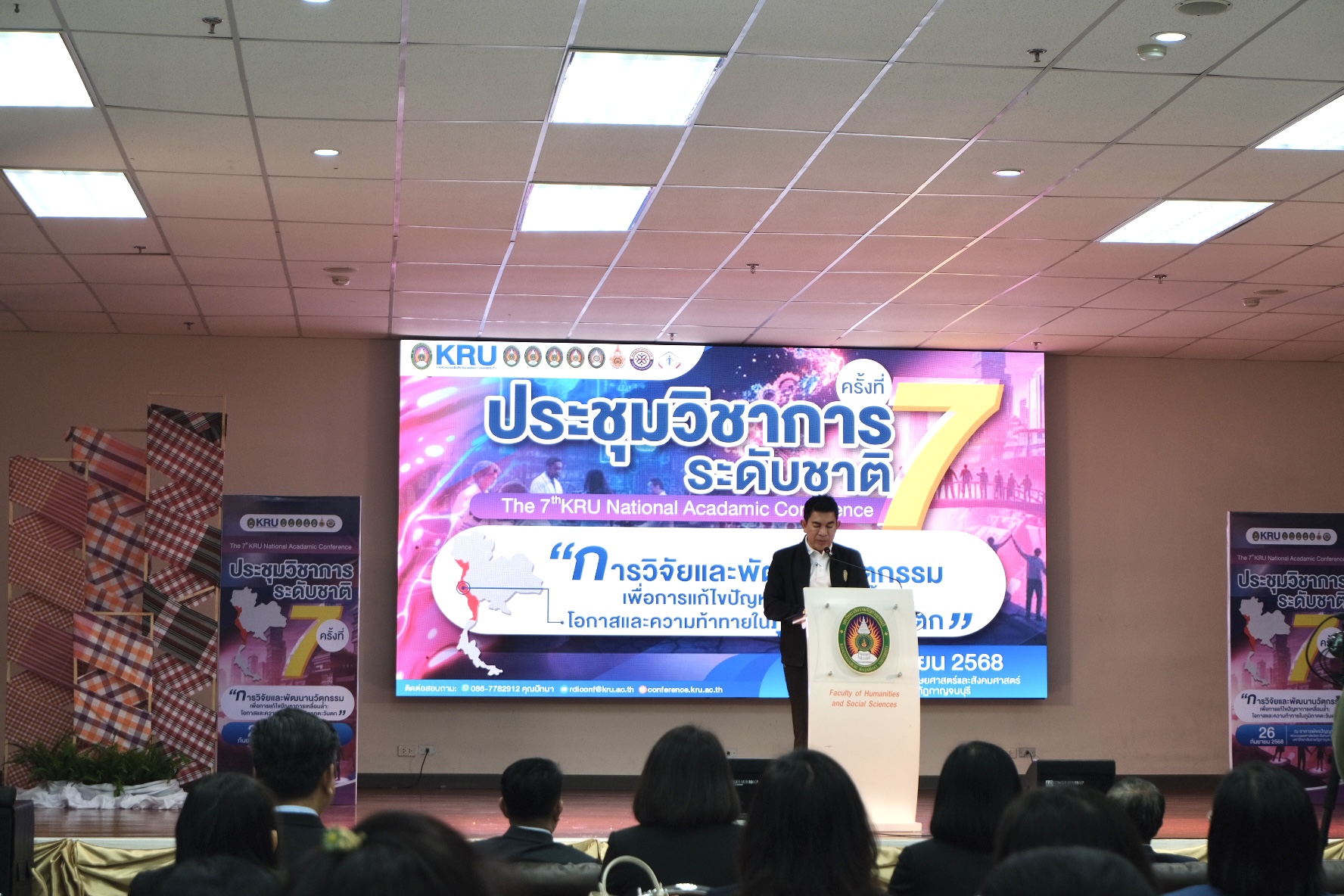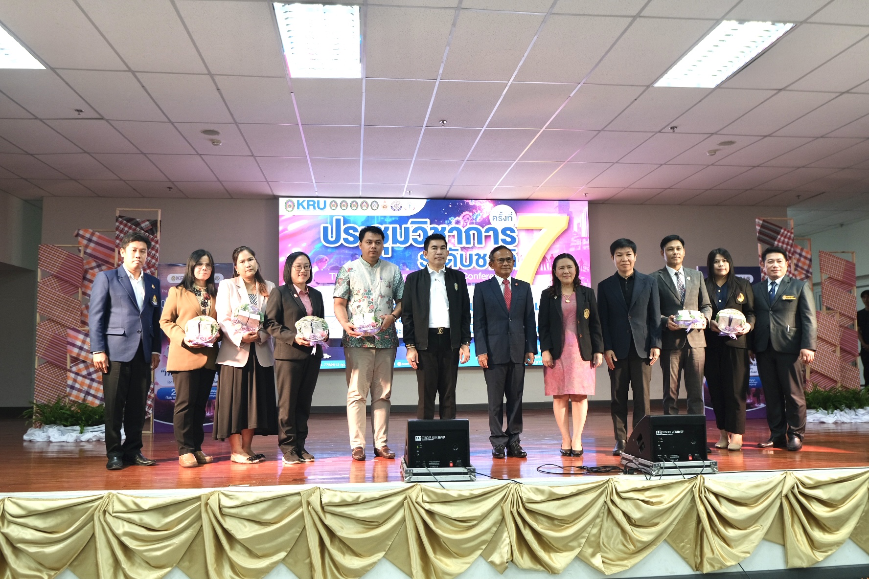 สถาบันวิจัยและพัฒนา มหาวิทยาลัยราชภัฏรำไพพรรณี ร่วมพิธีเปิดโครงการ “การประชุมวิชาการระดับชาติ มหาวิทยาลัยราชภัฏกาญจนบุรี ครั้งที่ 7” ในวันที่ 26 กันยายน 2568 เวลา 09.00 น. ณ ห้องประชุมสัตตบงกช ชั้น 4 อาคารพัชรปัญญา คณะมนุษยศาสตร์และสังคมศาสตร์ มหาวิทยาลัยราชภัฏกาญจนบุรี จังหวัดกาญจนบุรี โดยผู้ช่วยศาสตราจารย์ ดร.หยาดรุ้ง สุวรรณรัตน์ ผู้อำนวยการสถาบันวิจัยและพัฒนา พร้อมด้วยรองผู้อำนวยการฯ และบุคลากรเข้าร่วมในพิธีเปิด ฯ ครั้งนี้