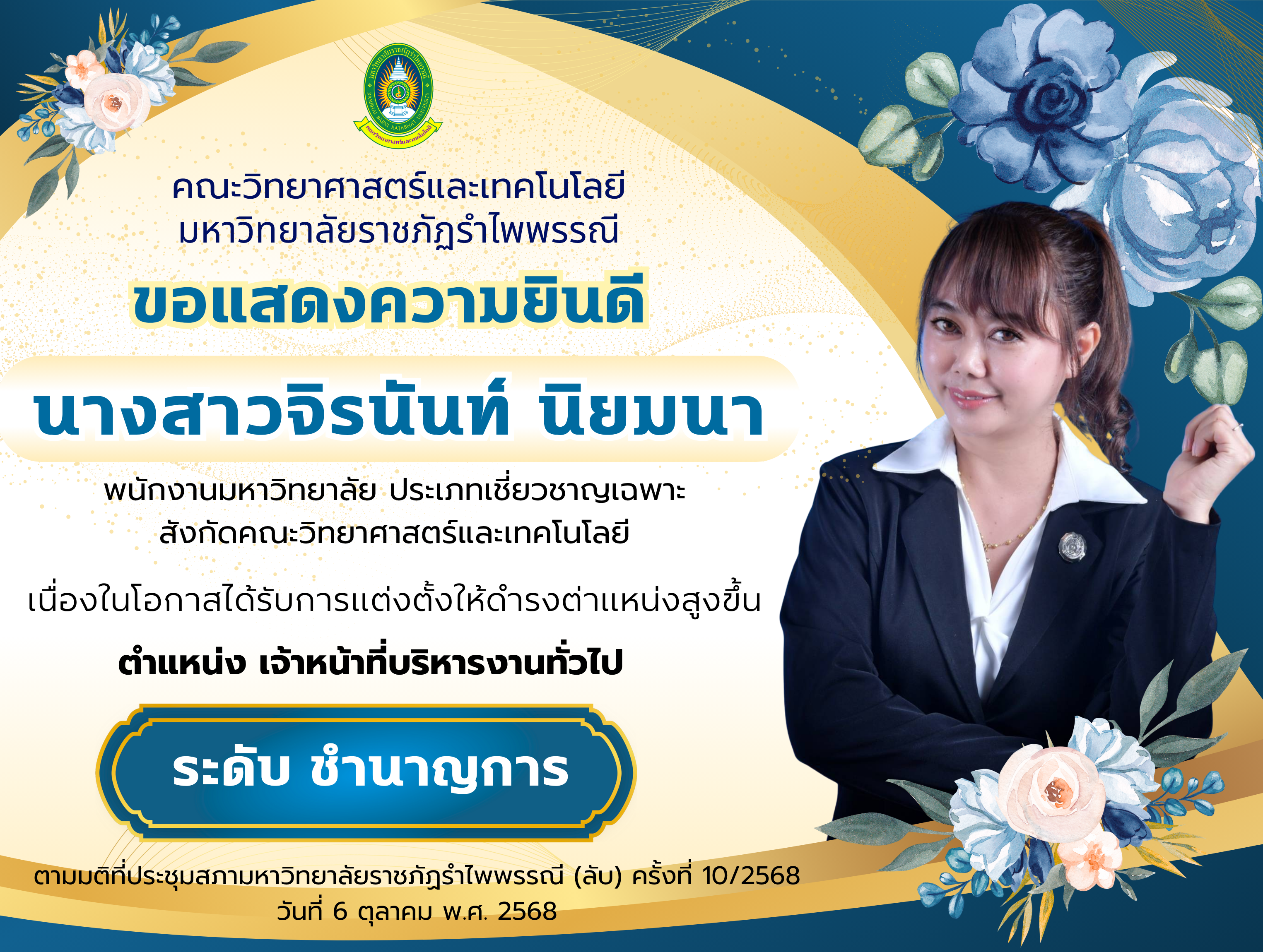 #ขอแสดงความยินดี นางสาวจิรนันท์ นิยมนา