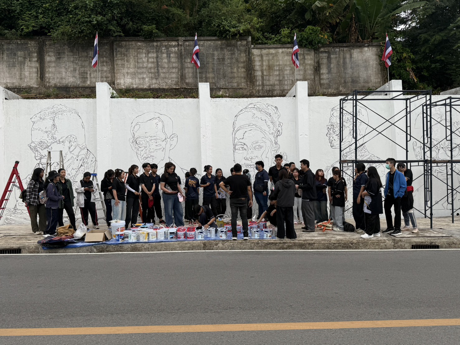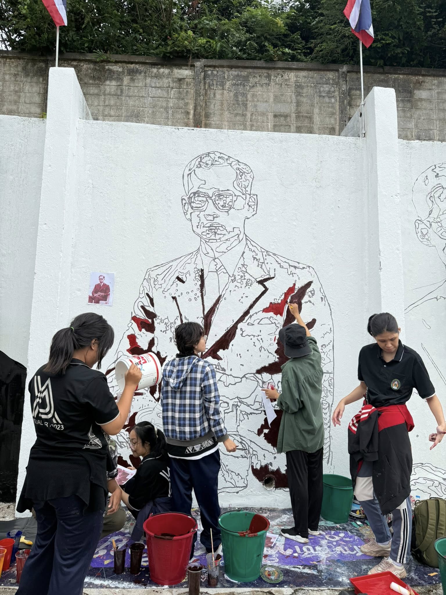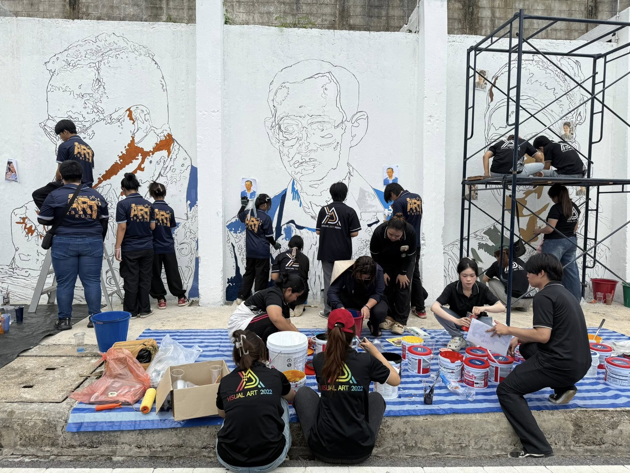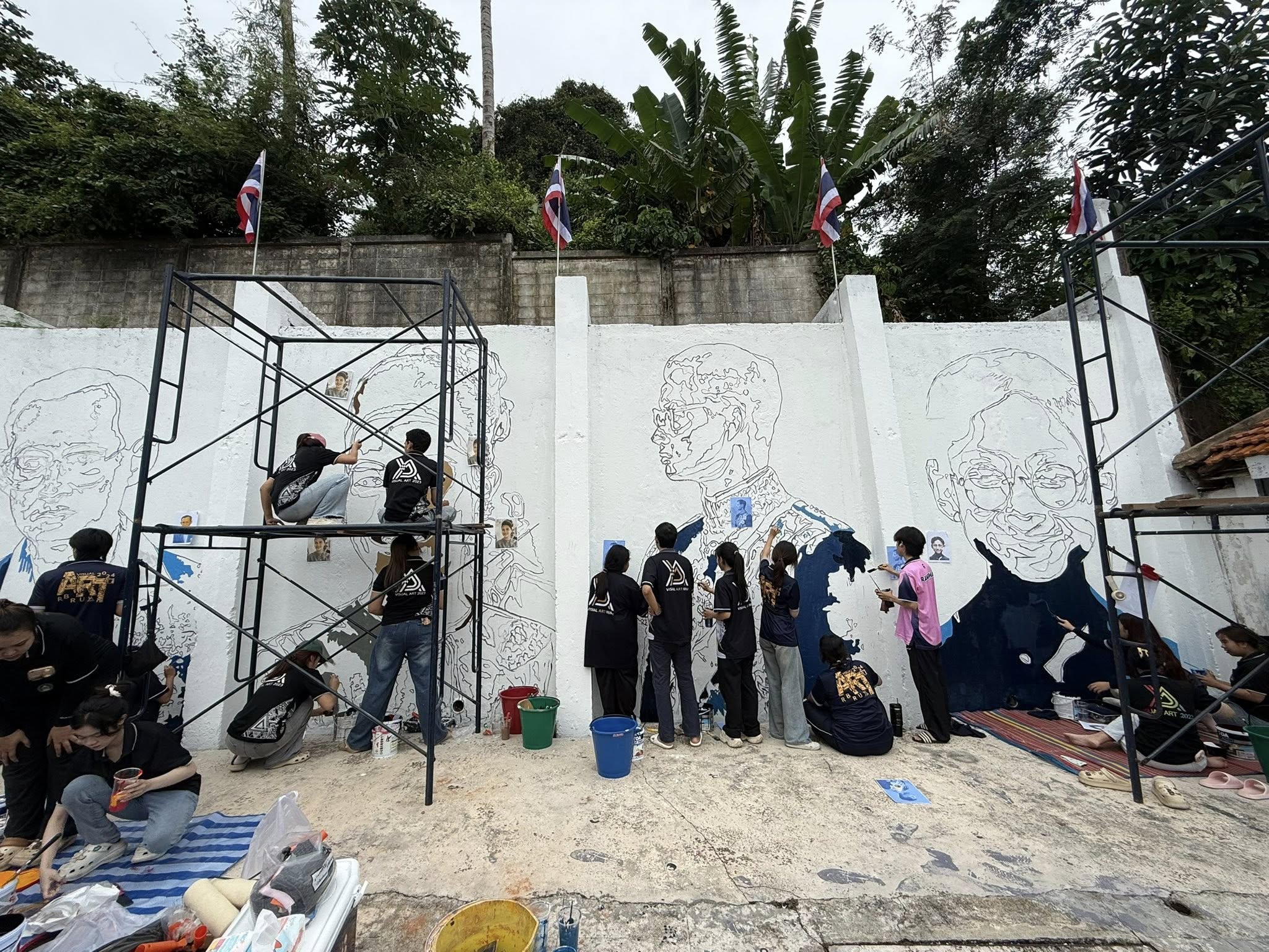 ระหว่างวันที่ 7 - 9 พ.ย.68 คณะมนุษยศาสตร์และสังคมศาสตร์ มหาวิทยาลัยราชภัฏรำไพพรรณี โดยสาขาวิชาทัศนศิลป์ นำโดย อาจารย์กฤติยา โพธิ์ทอง ประธานสาขาวิชา พร้อมคณาจารย์และนักศึกษาชั้นปีที่ 2 – 4 ลงพื้นที่ปฏิบัติการปรับปรุงและบูรณะภาพวาดจิตรกรรมบนกำแพงบริเวณหน้าเรือนจำเก่าจังหวัดจันทบุรี ตำบลวัดใหม่ อำเภอเมือง จังหวัดจันทบุรี โครงการนี้มีวัตถุประสงค์เพื่อฟื้นฟูภาพจิตรกรรมที่ชำรุดทรุดโทรมตามกาลเวลา ซึ่งเป็นภาพวาดที่บอกเล่าเรื่องราวเกี่ยวกับพระราชกรณียกิจของพระบาทสมเด็จพระเจ้าอยู่หัว รัชกาลที่ 9 และถือเป็นสัญลักษณ์สำคัญของชุมชน การบูรณะในครั้งนี้เป็นการผนึกกำลังของคณาจารย์และนักศึกษา เพื่ออนุรักษ์งานศิลปะอันทรงคุณค่า และร่วมทำนุบำรุงศิลปวัฒนธรรมในท้องถิ่น ตามพันธกิจของมหาวิทยาลัยราชภัฏเพื่อการพัฒนาท้องถิ่น