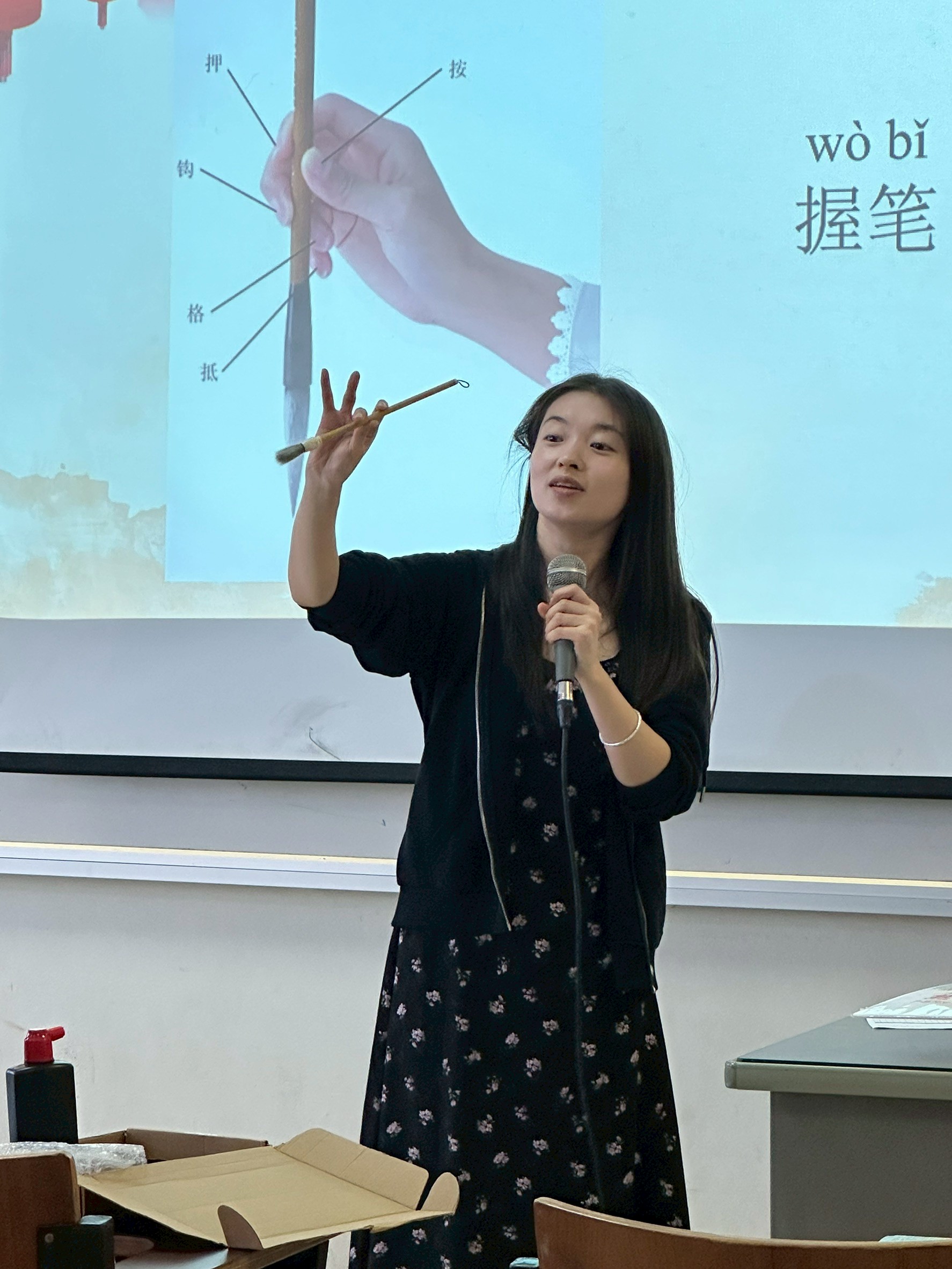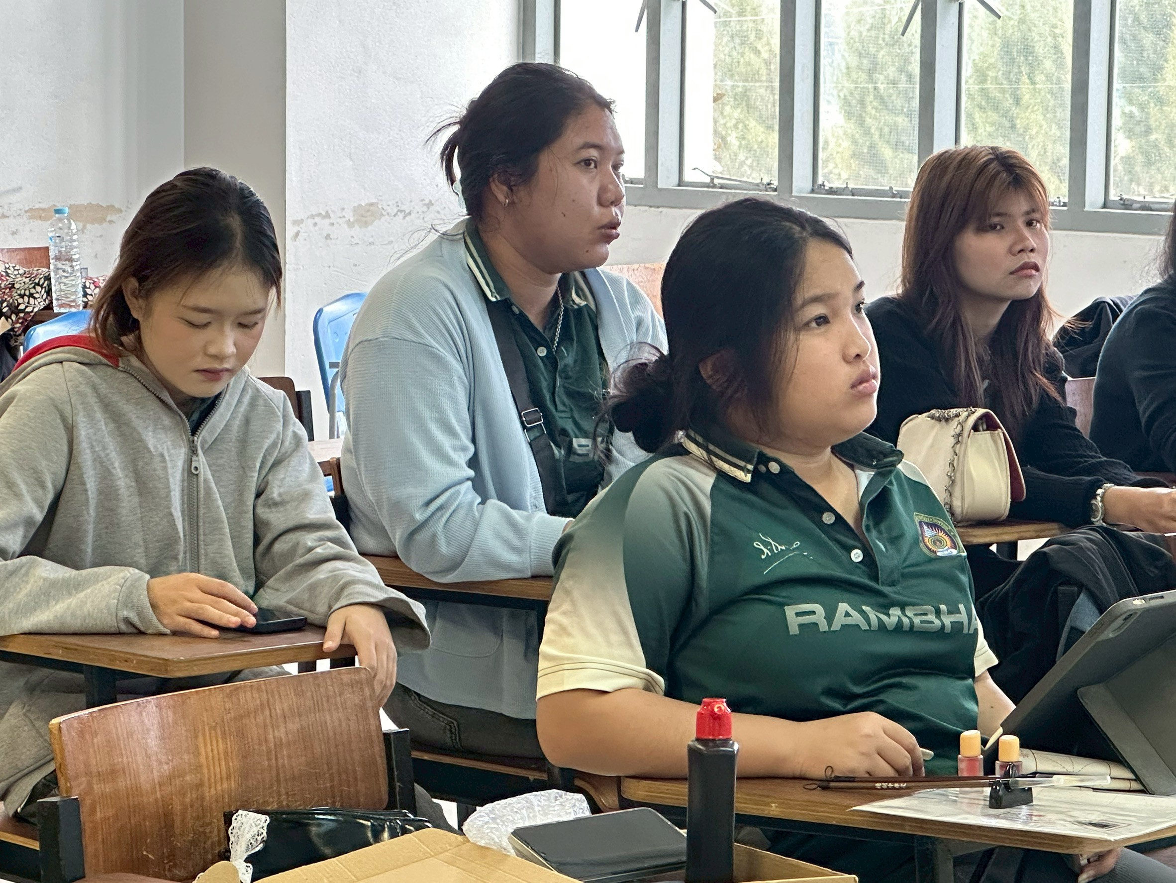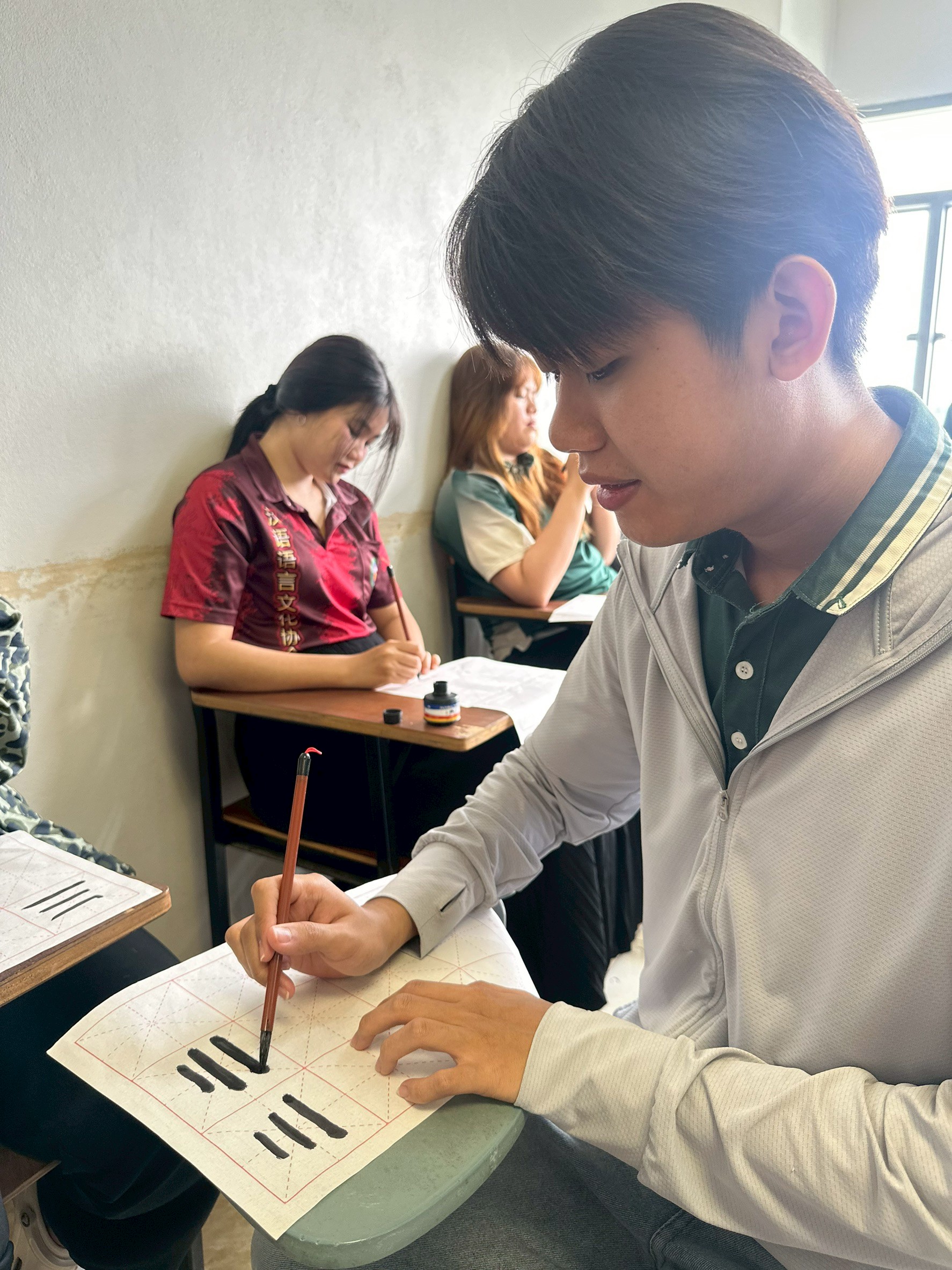09.00 น. (17 พ.ย.68) ณ ห้อง 35308 นักศึกษาสาขาวิชาภาษาจีน ชั้นปีที่ 2 ได้เข้าร่วมกิจกรรมการเรียนรู้ "การเขียนพู่กันจีน" (Chinese Calligraphy) โดยได้รับเกียรติจาก อาจารย์ Weitao Wang อาจารย์ชาวจีน เป็นผู้ถ่ายทอดความรู้ กิจกรรมนี้มีวัตถุประสงค์สำคัญเพื่อ พัฒนาทักษะการเขียนภาษาจีน ของนักศึกษาให้ดียิ่งขึ้น ผ่านการฝึกฝนด้วยพู่กัน ซึ่งจะช่วยให้ผู้เรียน เข้าใจโครงสร้างตัวอักษรจีน อย่างลึกซึ้ง และในขณะเดียวกันก็เป็นการ ซึมซับศิลปวัฒนธรรมจีนอันทรงคุณค่า ไปพร้อมกัน