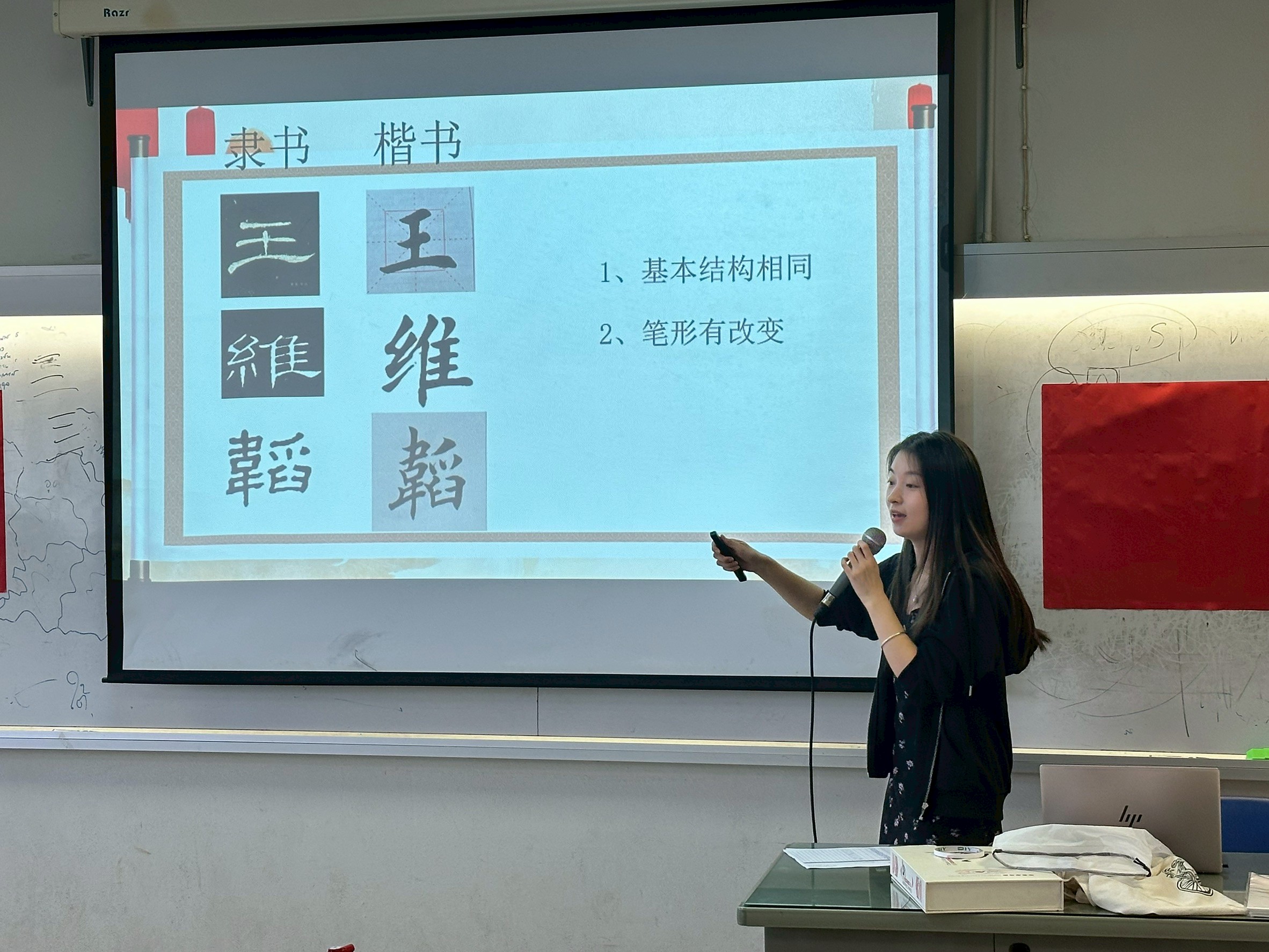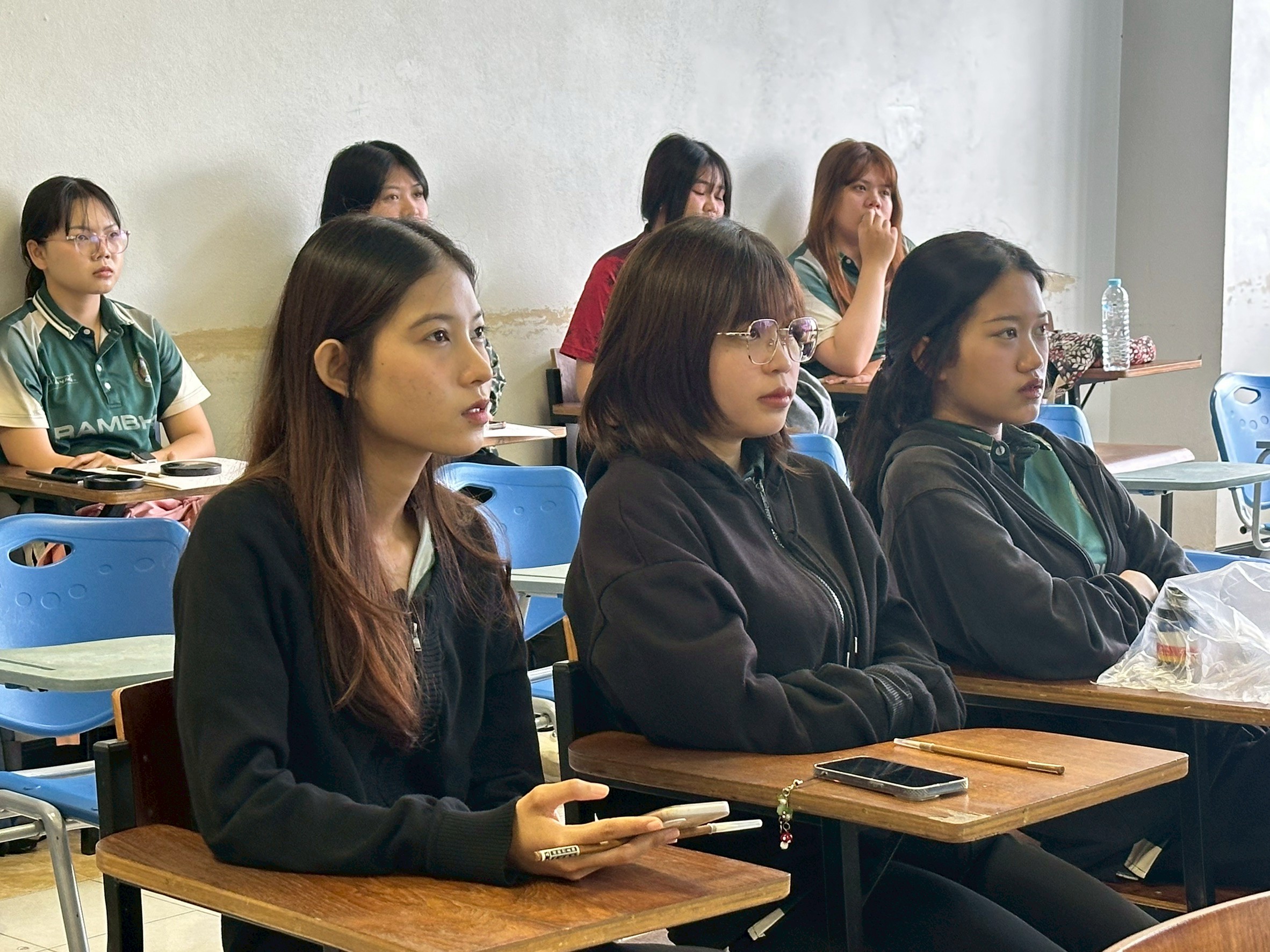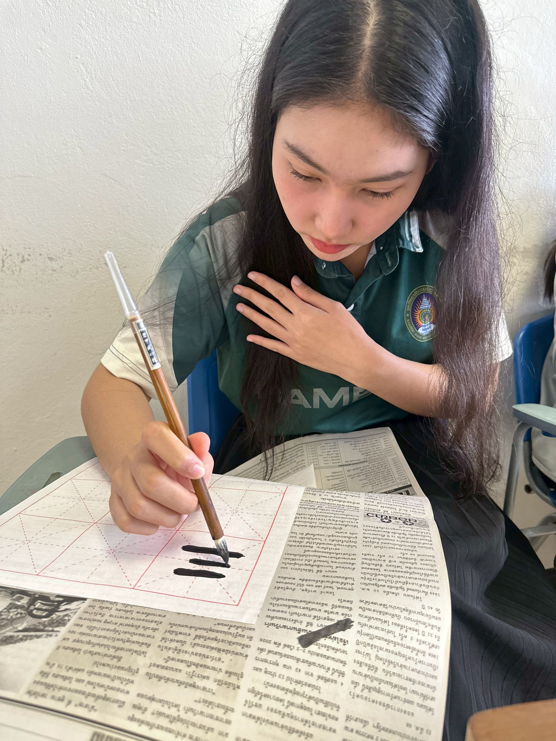09.00 น. (17 พ.ย.68) ณ ห้อง 35308 นักศึกษาสาขาวิชาภาษาจีน ชั้นปีที่ 2 ได้เข้าร่วมกิจกรรมการเรียนรู้ "การเขียนพู่กันจีน" (Chinese Calligraphy) โดยได้รับเกียรติจาก อาจารย์ Weitao Wang อาจารย์ชาวจีน เป็นผู้ถ่ายทอดความรู้ กิจกรรมนี้มีวัตถุประสงค์สำคัญเพื่อ พัฒนาทักษะการเขียนภาษาจีน ของนักศึกษาให้ดียิ่งขึ้น ผ่านการฝึกฝนด้วยพู่กัน ซึ่งจะช่วยให้ผู้เรียน เข้าใจโครงสร้างตัวอักษรจีน อย่างลึกซึ้ง และในขณะเดียวกันก็เป็นการ ซึมซับศิลปวัฒนธรรมจีนอันทรงคุณค่า ไปพร้อมกัน