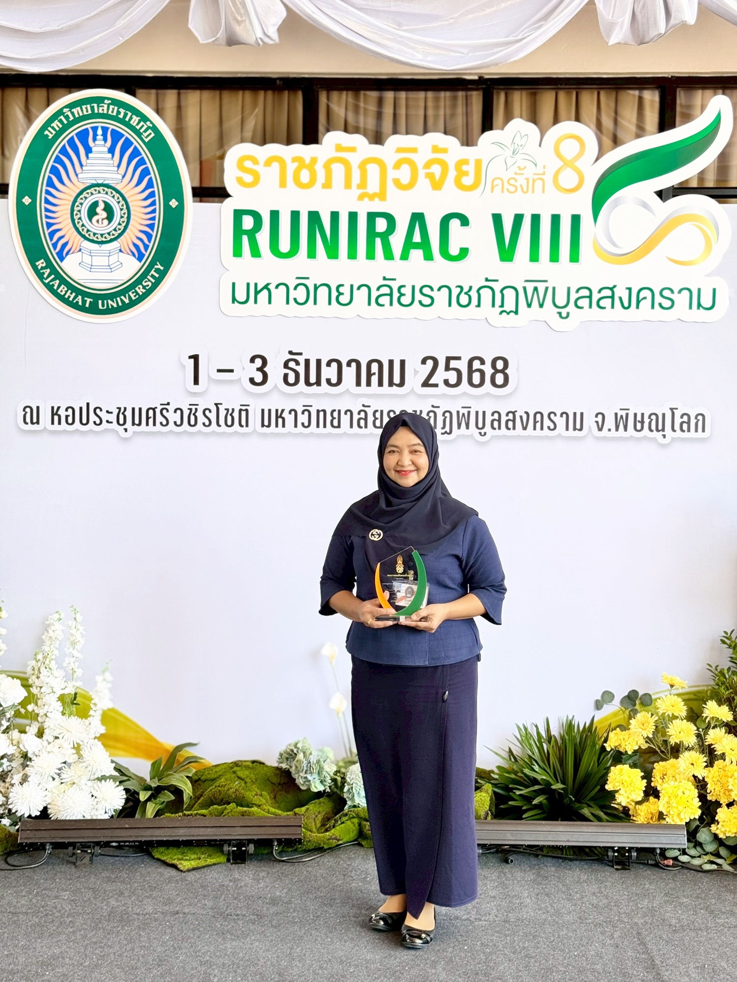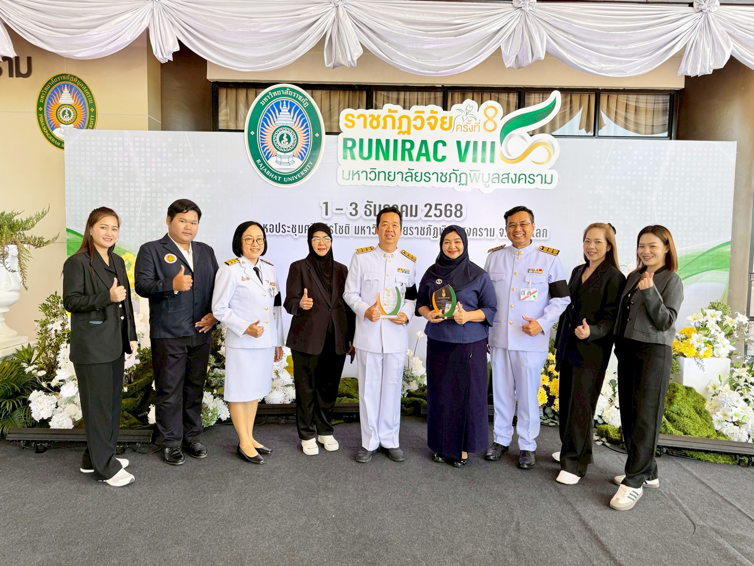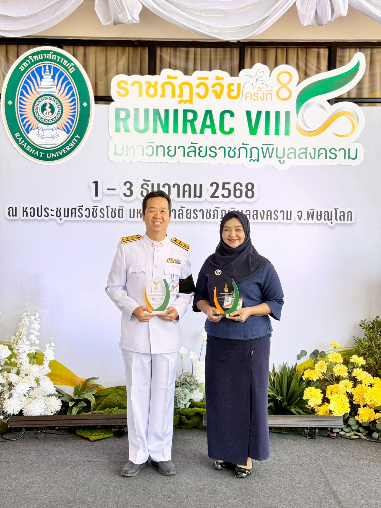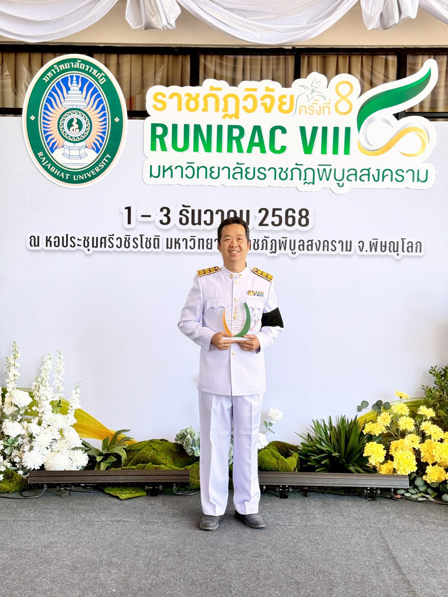 สถาบันวิจัยและพัฒนา มหาวิทยาลัยราชภัฏรำไพพรรณี ร่วมงานประชุมวิชาการระดับชาติและนานาชาติ "ราชภัฏวิจัย ครั้งที่ 8" (RUNIRAC VIII) ในระหว่างวันที่ 1-3 ธันวาคม 2568 ณ หอประชุมศรีวชิรโชติ มหาวิทยาลัยราชภัฏพิบูลสงคราม (ส่วนทะเลแก้ว) อำเภอเมือง จังหวัดพิษณุโลก โดยผู้ช่วยศาสตราจารย์ ดร.หยาดรุ้ง สุวรรณรัตน์ ผู้อำนวยการสถาบันวิจัยและพัฒนา พร้อมด้วย อาจารย์ ดร.เจนจบ สุขแสงประสิทธิ์ รองผู้อำนวยการฯ และบุคลากร เข้าร่วมในงานนี้ พร้อมทั้งร่วมจัดแสดงผลงานนิทรรศการ