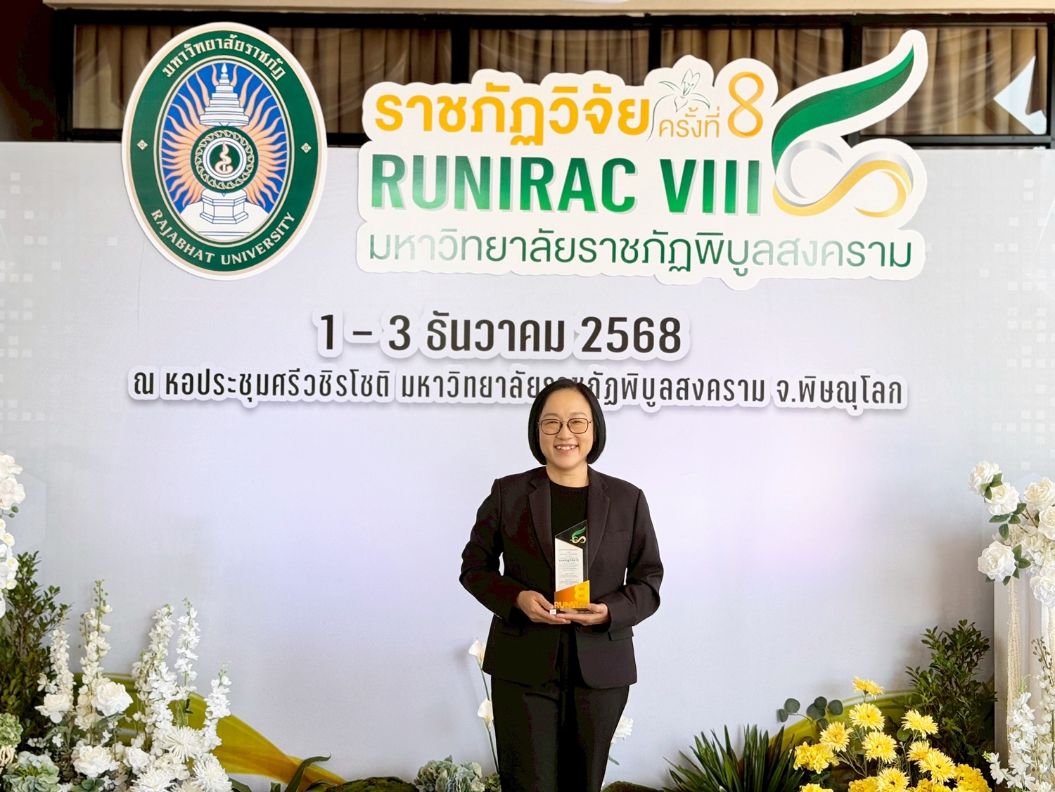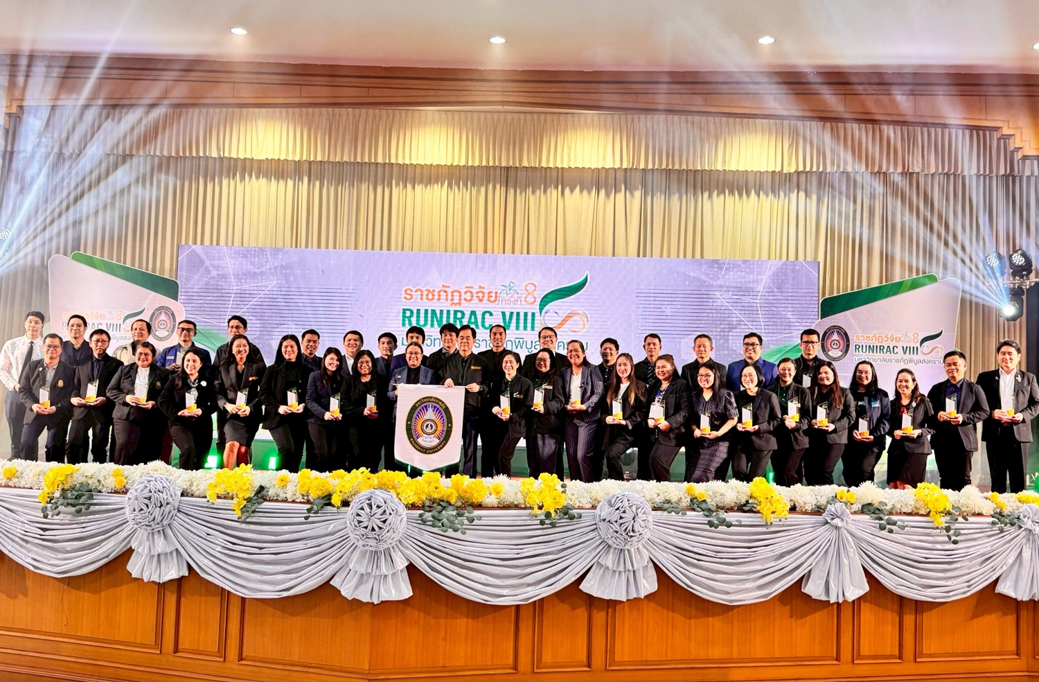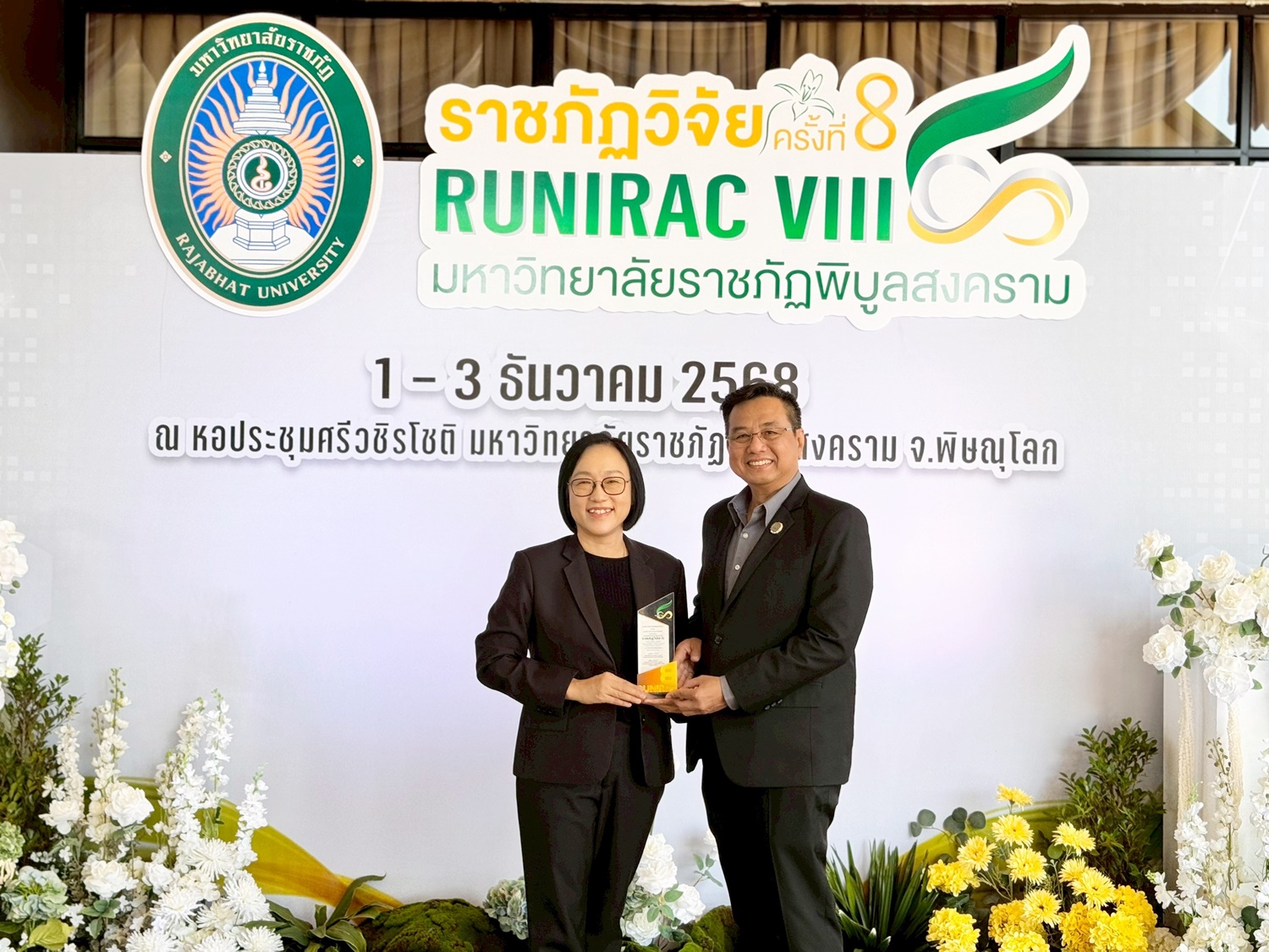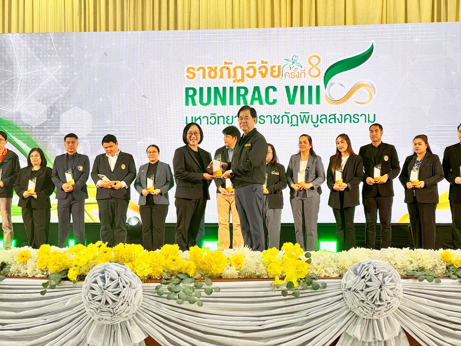 สถาบันวิจัยและพัฒนา มหาวิทยาลัยราชภัฏรำไพพรรณี ร่วมพิธีปิดงานและมอบโล่ขอบคุณมหาวิทยาลัยราชภัฏทั่วประเทศ ที่ร่วมส่งผลงานวิจัยและจัดแสดงนิทรรศการ ภายในงานประชุมวิชาการระดับชาติและนานาชาติ "ราชภัฏวิจัย ครั้งที่ 8" (RUNIRAC VIII) ในวันที่ 3 ธันวาคม 2568 ณ หอประชุมศรีวชิรโชติ มหาวิทยาลัยราชภัฏพิบูลสงคราม (ส่วนทะเลแก้ว) อำเภอเมือง จังหวัดพิษณุโลก โดยผู้ช่วยศาสตราจารย์ ดร.หยาดรุ้ง สุวรรณรัตน์ ผู้อำนวยการสถาบันวิจัยและพัฒนา เป็นผู้รับมอบโล่ขอบคุณ ฯ พร้อมทั้งมีพิธีมอบธงเจ้าภาพจัดงานประชุมวิชาการ ฯ “ราชภัฏวิจัย ครั้งที่ 9” โดยมหาวิทยาลัยราชภัฏอุดรธานี เป็นผู้รับมอบธงเจ้าภาพในการจัดงานครั้งถัดไป