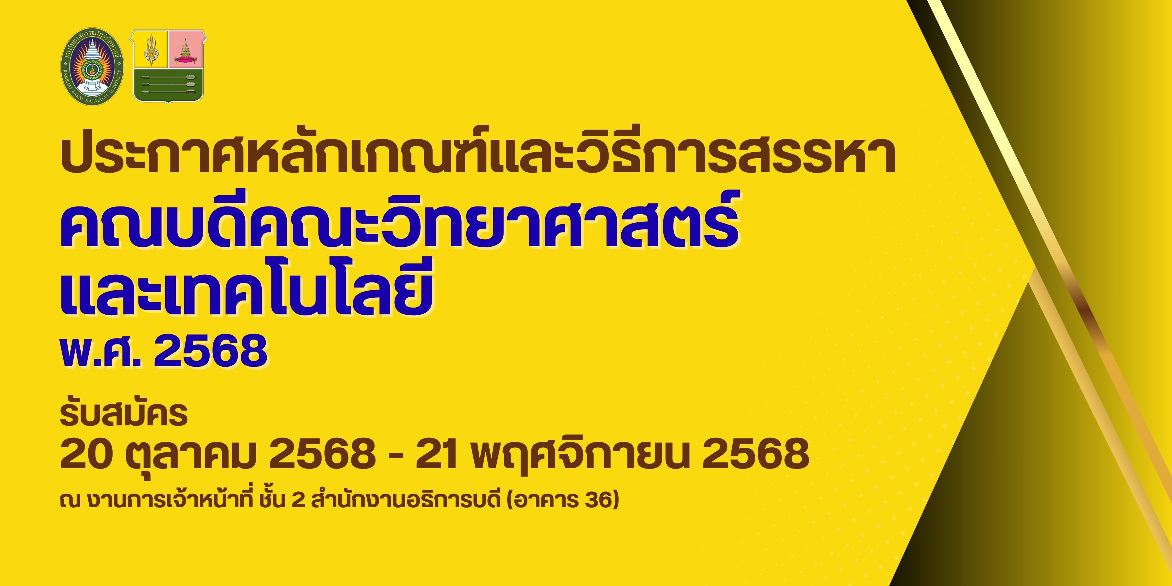 ประกาศหลักเกณฑ์และวิธีการสรรหาคณบดีคณะวิทยาศาสตร์และเทคโนโลยี