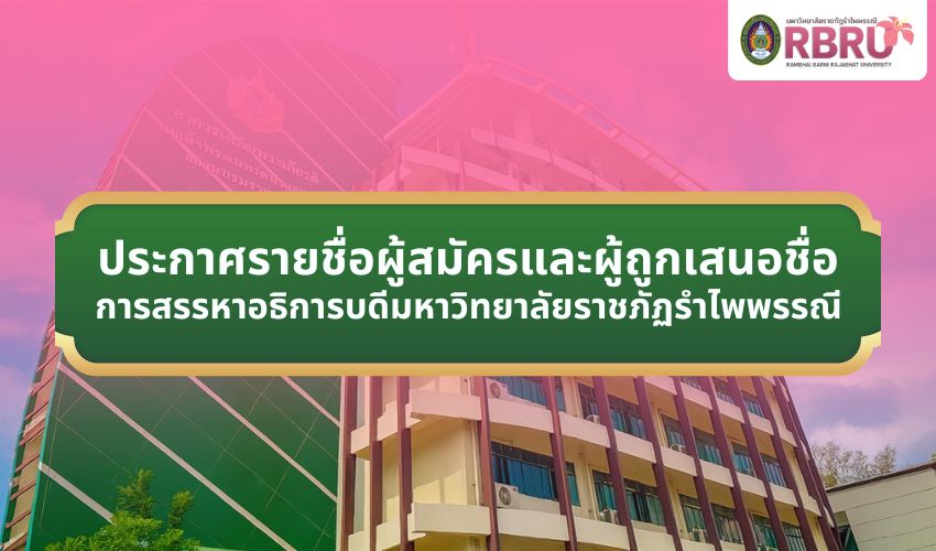 ประกาศรายชื่อผู้สมัครและผู้ถูกเสนอชื่อเข้ารับการสรรหาอธิการบดีมหาวิทยาลัยราชภัฎรำไพพรรณี