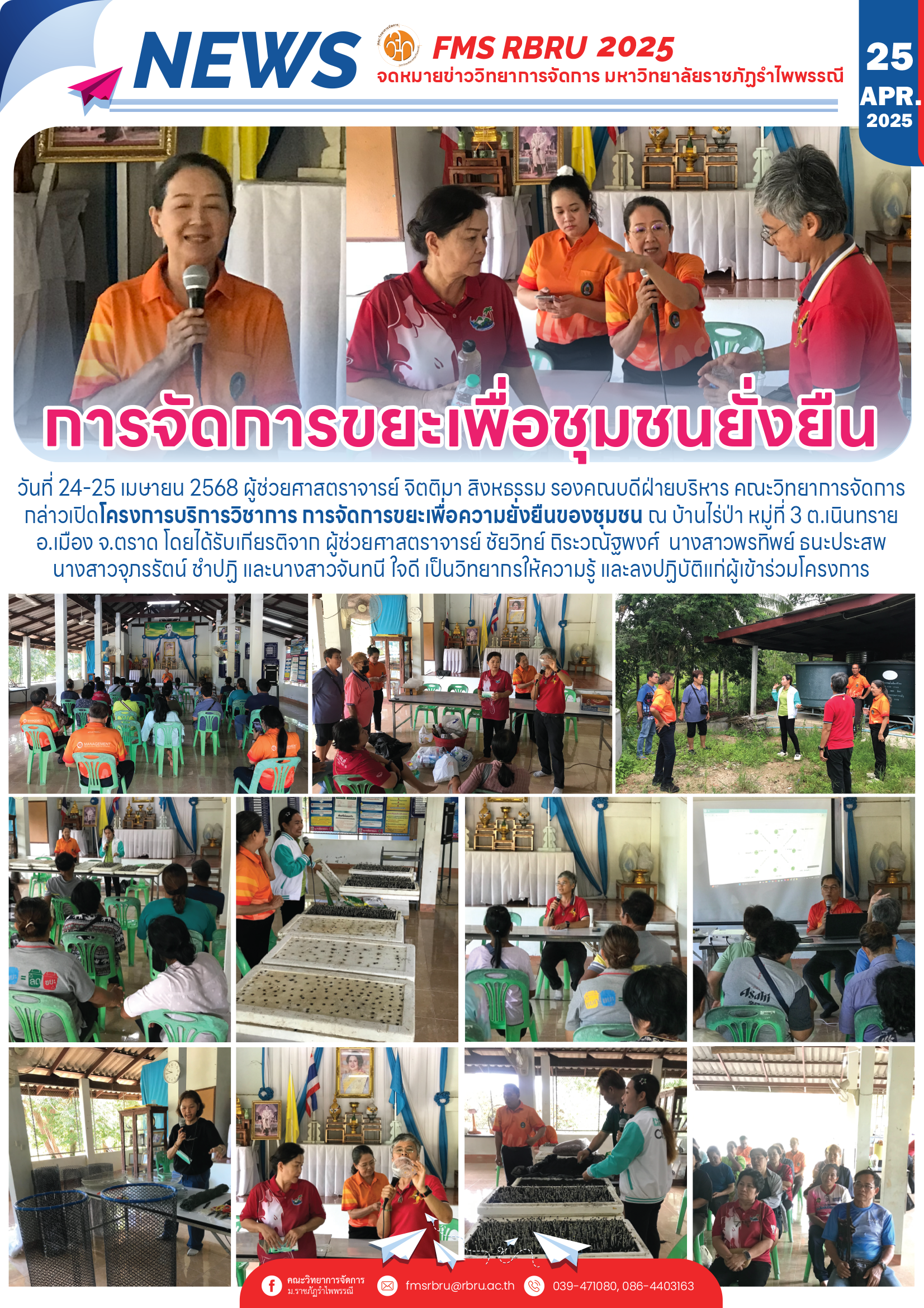 โครงการบริการวิชาการ การจัดการขยะเพื่อความยั่งยืนของชุมชน ณ บ้านไร่ป่า หมู่ที่ 3 ต.เนินทราย อ.เมือง จ.ตราด
