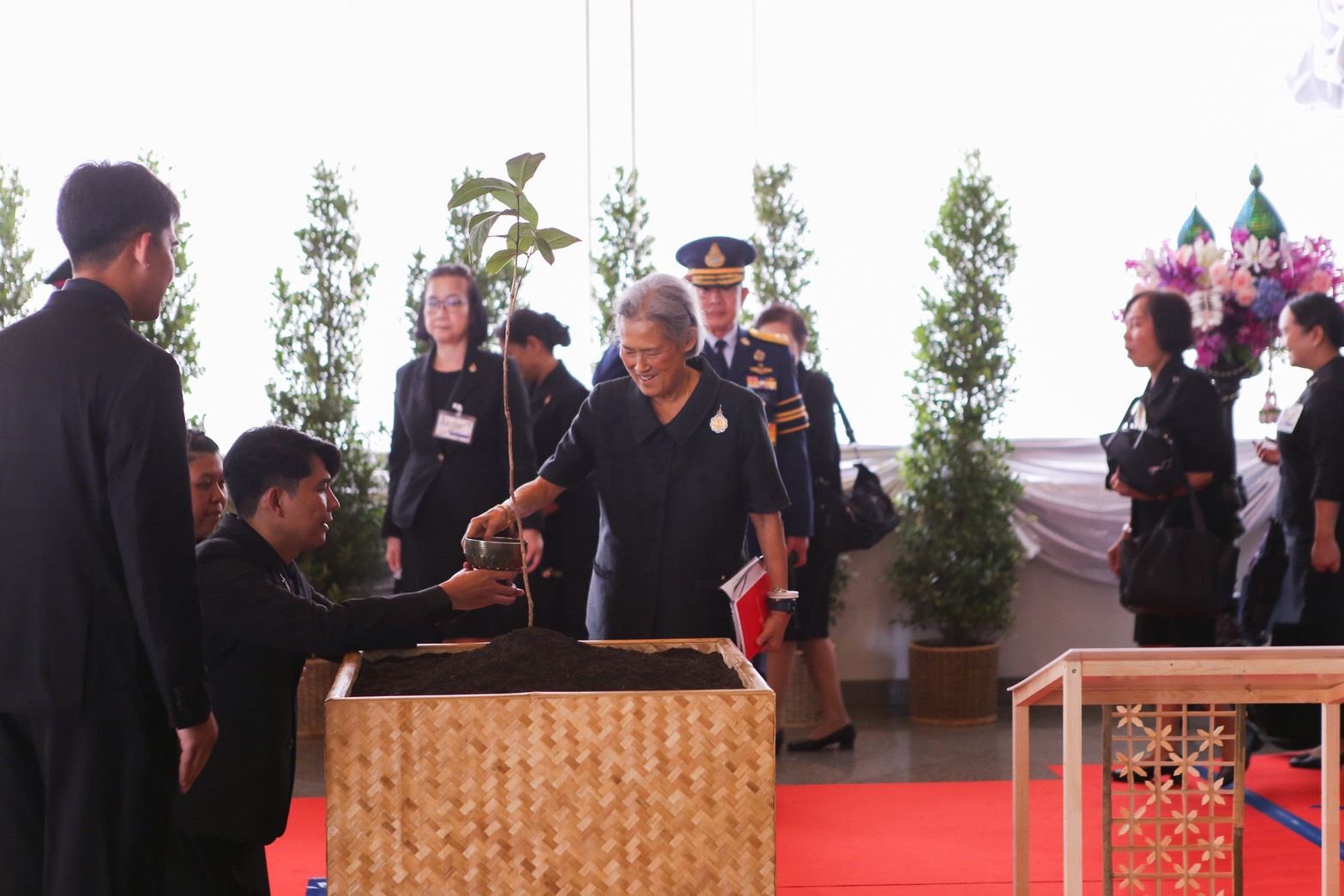 ในโอกาสนี้ สมเด็จพระกนิษฐาธิราชเจ้า กรมสมเด็จพระเทพรัตนราชสุดาฯ สยามบรมราชกุมารี ได้ทรงเสด็จพระราชดำเนินทอดพระเนตร วีดิทัศน์นิทรรศการเรื่อง “ทรัพยากรไทย : หวนดูทรัพย์สิ่งสินตน” และเยี่ยมชมนิทรรศการของ อพ.สธ. และนิทรรศการศูนย์ประสานงาน อพ.สธ. หลังจากนั้นทรงปลูกต้นอินทนิลบก ต้นไม้ประจำมหาวิทยาลัยแม่โจ้ และ เสด็จพระราชดำเนินโดยรถยนต์พระที่นั่ง เยี่ยมชมนิทรรศการของหน่วยงานสนองพระราชดำริ ประกอบด้วย